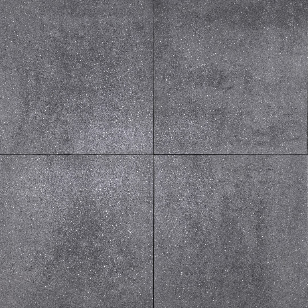 Uiterlijk en stijl: De tegel heeft een antracietkleurige basis met wolkvormige nuances, verrijkt met mica-deeltjes die een subtiele glinstering geven, vooral bij zonlicht.