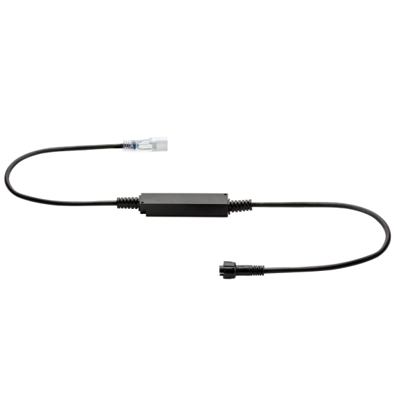 De LED-strip connector gebruik je om de LED-strip aan te sluiten op de hoofdkabel. Aan deze LED-strip connector zit een kabel van 1 meter en een male connector aan het andere uiteinde. Met behulp van de bijgeleverde female connector sluit je de LED-strip vervolgens aan.