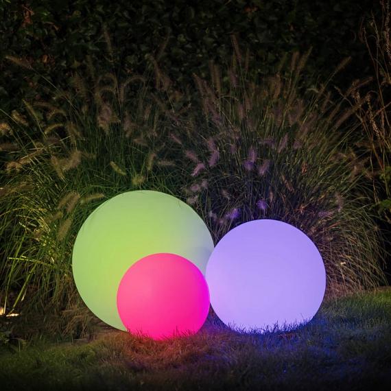 Met onze Deco bollen is jouw tuinfeest compleet. Plaats de lichtgevende bollen op verschillende plekken in de tuin en geef ze verschillende kleuren of laat ze verspringen van kleur voor een speels effect. De lichtgevende bollen zijn in 3 formaten beschikbaar, je kunt kiezen uit 30, 40 en 50 cm.